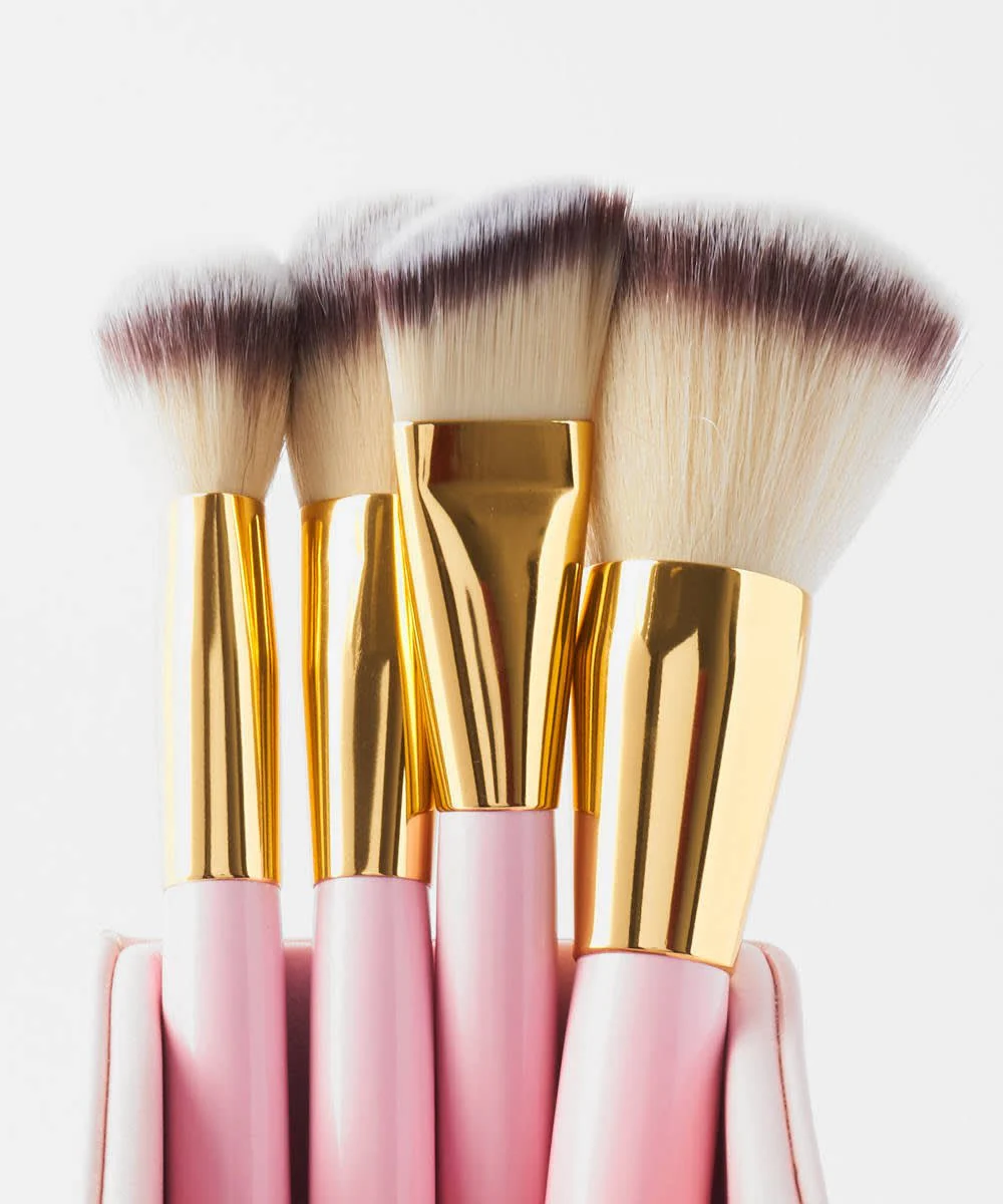 The chic pink studded handles add a touch of elegance, while the versatile brush selection ensures you have everything you need for a full-face makeup look—from foundation and contour to eyeshadow and brows.